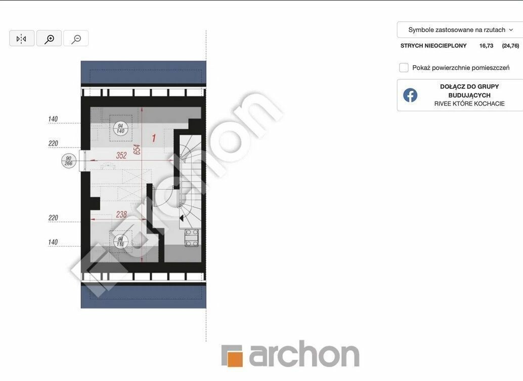 Poddasze: 16,73m2 ( po podłodze 24,76m2) do własnej aranżacji