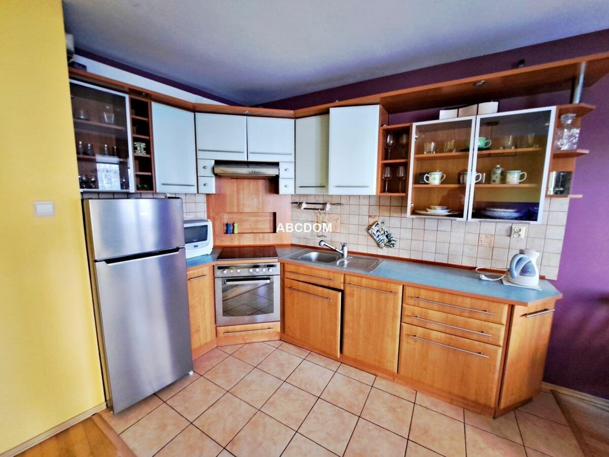 - aneks kuchenny: meble stojące i wiszące, płyta z piekarnikiem, lodówka, stół, 4 krzesła;