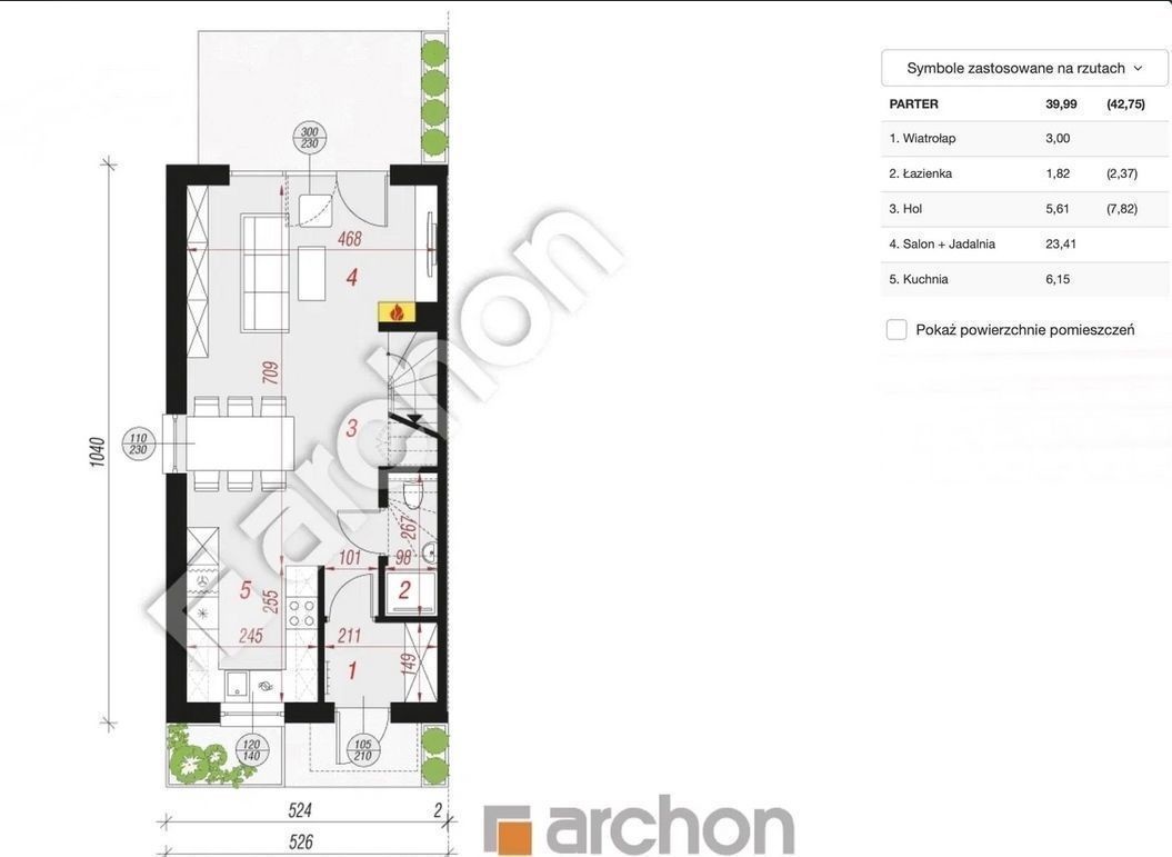 PARTER 39,99m2 ( po podłodze 42,75m2)