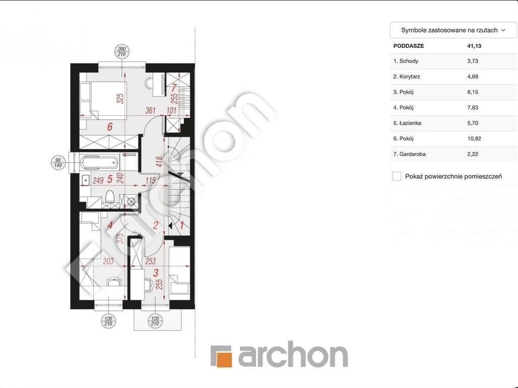 Poddasze : 16,73m2 ( po podłodze 24,76m2) do własnej aranżacji