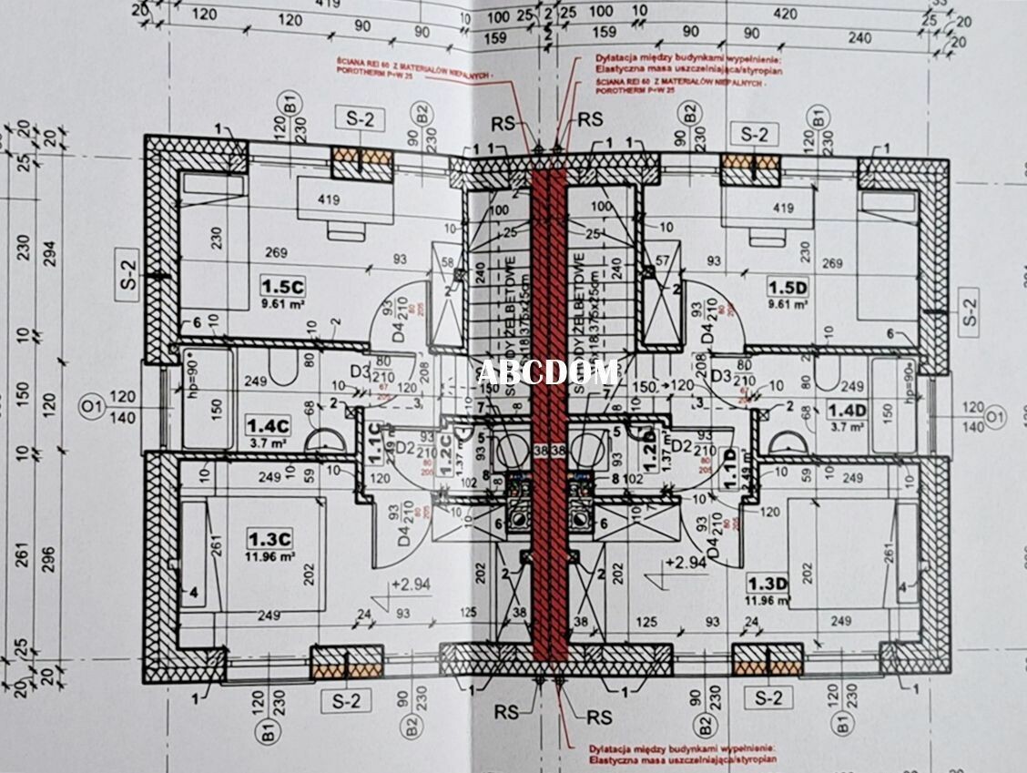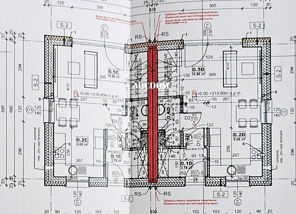 Pomiędzy ścianami segmentówbliźniaka - dylatacja ( każdy segment ma swoją ścianę) .