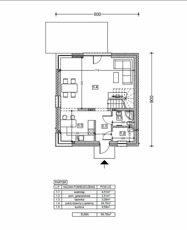 - salon z jadalnią 32,66m2 oraz wyjściem na taras