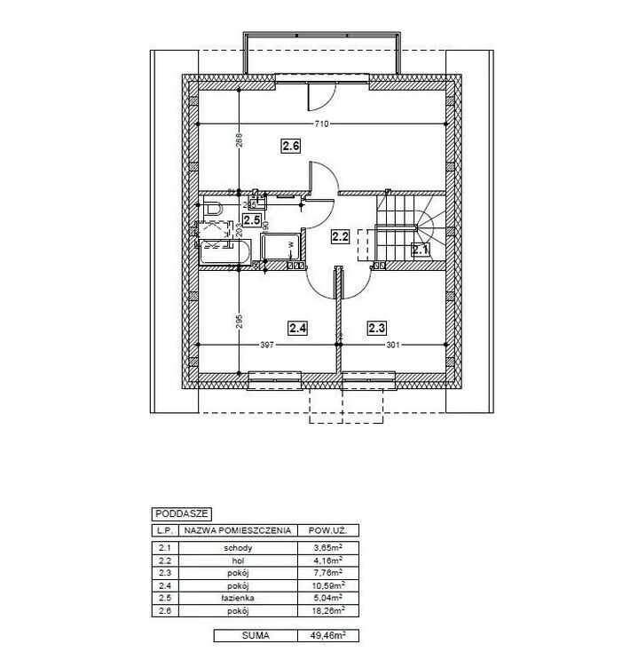 PODDASZE - powierzchnia użytkowa 45,53m2